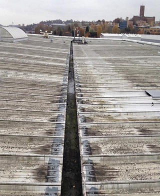 They had an issue with the roof, because workers needed to access the air conditioning units to service them. In addition, the perimeter of the roof has ManSafe clips where window cleaners could attach safety harnesses to scale down the sides of the building. The problem was that, obviously, the operatives needed to walk on the roof, which has box gutters that people walked in and, over time, the roof panels suffered damage and the protective paint became eroded.