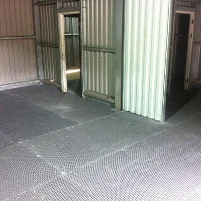Smoke and water is pumped into the room during training sessions, so grating was chosen to allow any water to collect under the grating for draining, rather than rest on the floor surface, eradicating the threat of a potential slip hazard.