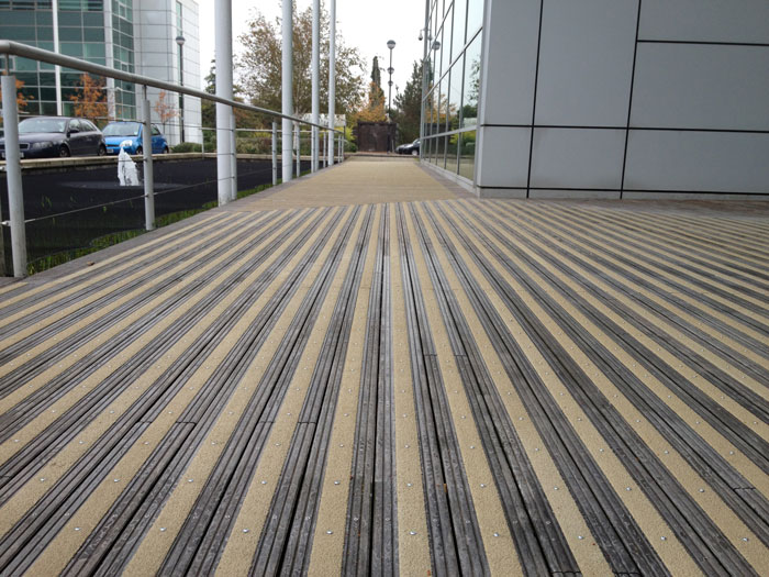 Our Anti Slip Heavy Duty GRP Decking Strips were installed outside Cambridge Silicon Radio. They offer a solution to a potential safety hazard outside a property with high foot traffic such as CSR.