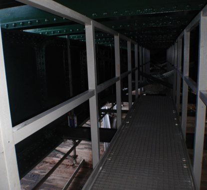 Fibregrid fabricated the underbridge walkway sections in 3mtr units for ease of transportation and installation at site. The support beams were clamped in place using Lindapter fixings at 3mtr centres with walkway units bolted on top. Handrail was then fixed to the sides to enable speedy installation.