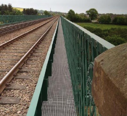 Using lightweight GRP made installation easier as the installers needed to be able to bring the platform sections up to the bridge deck and put into place easily. Open mesh grating was used for both the under bridge walkway and the trackside walkway. However, where the bridge crosses the main link road to Aberdeen from southern Scotland (A90), for a 40 metre stretch on either walkway it was necessary to supply 28mm thick solid top grating in order to prevent any objects, such as stones, falling through the mesh on to passing traffic below.