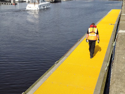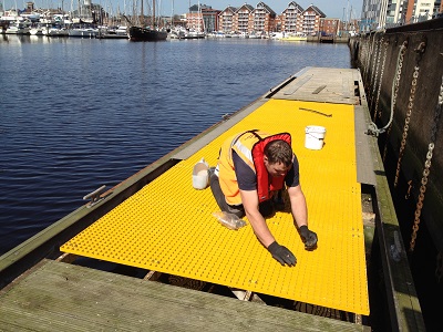 Our GRP Heavy Duty Embedded Grit Top Grating was installed at Marina in Ipswich. Typically at busy marinas, there are occasions when the floor needs to withstand significant force. Our GRP grating has a high energy absorption which essentially means it can be knocked repeatedly without causing permanent damage.