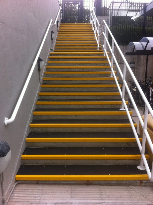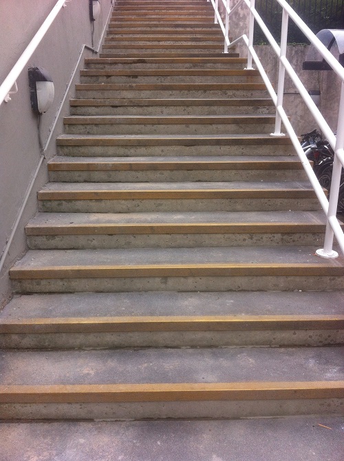 Please see below for before and after images. We believe these images demonstrate very clearly the benefits of having our extremely durable and chemical resistant SlipGrip Heavy Duty Anti Slip Stair Tread Covers installed at your premises.