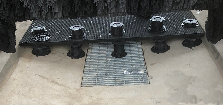 High volumes of water easily filter through the mesh, and the load bearing capabilities allow it to withstand heavy vehicle weight. Combined with the Grating Pedestals and their slope correction capacity; you can ensure the grating is level and that room can be left under the grating for the liquid to drain off.