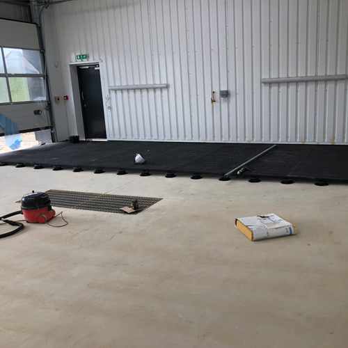 FibreGrid supply GRP grating and pedestal feet system for car wash bay - Porsche Experience Centre Silverstone.