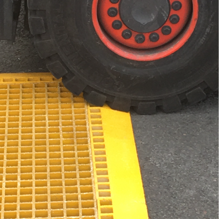 Our GRP fibreglass gritted contrasting coloured ramp is used for areas of grating that are raised from the ground. Ideal for areas with any foot traffic to avoid trips and falls, or for areas of grating that require vehicle access. The grating ramps are 125mm wide and have a 90mm covered front section which can easily connect to any size grating using standard Fixing Clips.