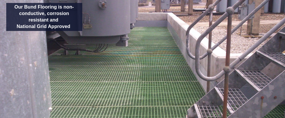 Our National Grid Approved FibreGrating can be raised by pedestals or rubber feet to allow for the flow of any liquids to the sump. Its anti slip top surface provides safe flooring for a wide range of working environments, and its corrosion resistant and non-conductive properties means our FibreGrating is made to last.