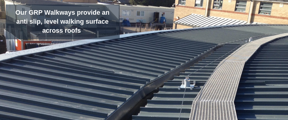 In potentially highly trafficked areas of roofing, where regular access may be required for maintenance regimes GRP roof walkway systems distributes the load evenly on the roof and thus reduces wear and tear on the roofing system itself. Each section of the walkway is manufactured in glass reinforced plastic with enhanced slip resistance for adverse weather conditions.