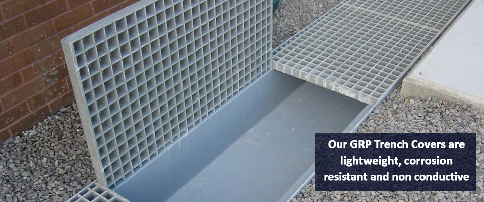 FibreGrid offer solid top and open mesh GRP trench covers suitable for general pedestrian access of 5kn/m2 and vehicle access up to 11.5T and can also offer a range of pultruded interlocking deck and slab panels If any on-site alteration is required, then our products are very easy to cut on site compared to their metallic or concrete equivalents..