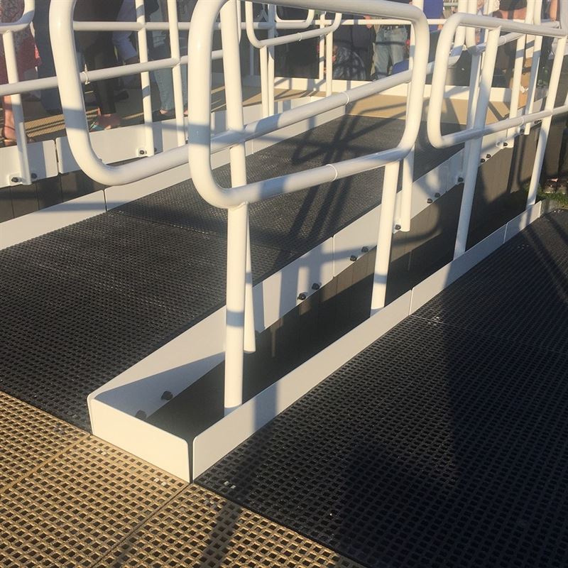 Dry fit all Grating panels to ensure that they fit freely and that they sit flat down on to the surface. If required, panels can be trimmed on site to suit using an industrial jigsaw and appropriate cutting blades (Bosch “T101 A1F” or similar are ideal).