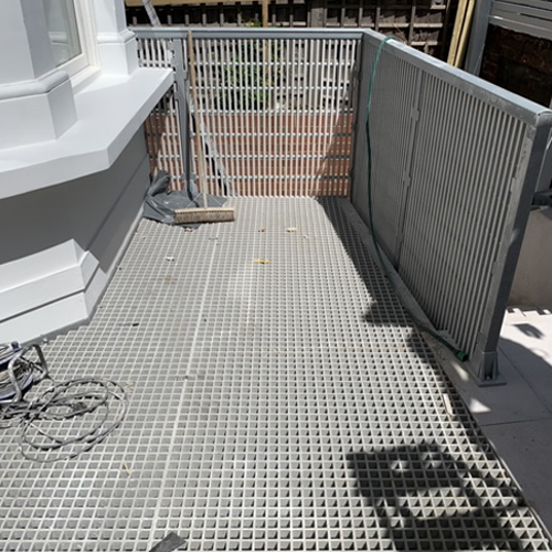 38mm deep FG04 GRP Grating and Pultruded Profiles were supplied to the Fulham-based school to form the fire escape route.