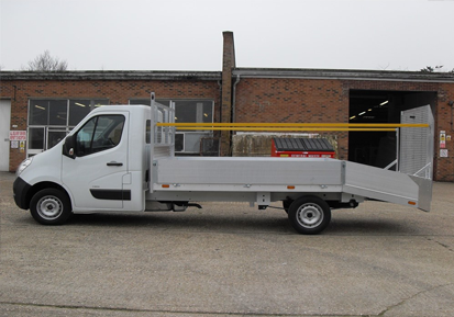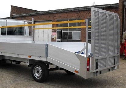 The grating was installed on the rear access ramps of the vehicles, while the yellow box sections act as guard rails to protect working operatives from falling onto the road while the vehicle is moving.