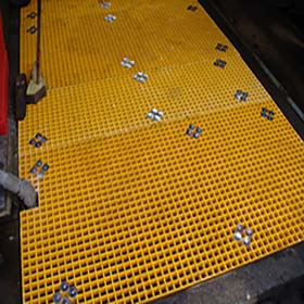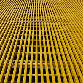 FibreGrid’s square mesh FibreGrating is an extremely durable, long-lasting; chemical resistant, anti-slip moulded fibreglass grating.