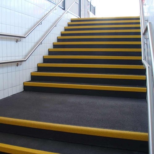 SlipGrip Heavy Duty Anti Slip GRP Stair Tread Covers and Flat Sheets are our signature products. These anti slip products feature our aluminum oxide grit coating which is more hard wearing and provides a higher slip resistance when wet (PTV 70) and dry (PTV 76). The hard wearing grit means it is guaranteed to last for at least 10 years before it may need replacing. We recommend our Heavy Duty range for applications requiring a stronger, more durable product that needs to be able to withstand heavy foot traffic.