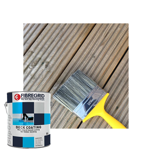 Our SlipGrip Anti Slip Deck Coating will significantly reduce the slip potential of decking and other underfoot timber products. It is urethane alkyd-based resin thinned with white spirit and contains aluminium oxide aggregate. It is available in 5L tin and is touch dry in 2-4 hours.