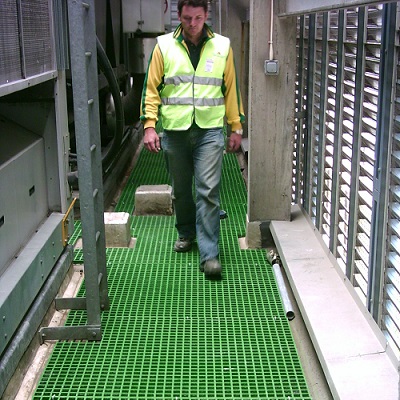Our GRP grating has a high energy absorption, thus it can be repeatedly knocked without causing permanent damage, unlike steel which will buckle under impact. Our standard grating is also fire retardant(tested in accordance with BS 476: Part 7 and also meets the requirements of Class 2), chemical and corrosion resistant, and with its 10 year guarantee, this makes it perfect for a variety of applications from vertical building risers and cooling towers, to walkways and railway crossing points.