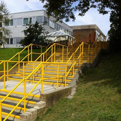 Most workplaces have exterior stairs or a walkway that when wet or icy, could create a serious slip risk. In order to counteract this, we recommend the exceptionally strong FibreRail modular handrail. Our FibreRail meets the requirements set by the Disability Discrimination Act and is ideal for a variety of applications. It is constructed from exceptionally strong fibreglass material and has PVC ‘warm to touch’ coating that has been designed with Building Regulations in mind.