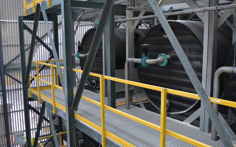 GRP Platforms FibreGrid not only supply GRP Profiles, but our project management team is available to help design and install pre-engineered composite platforms; combining the use of profiles, grating, handrails and ladders, tailor made to suit your needs. Our pre-engineered composite platforms serve as a cost effective solution to expensive, bespoke structures made from more traditional materials such as steel, which are often unsafe, difficult to clean, and costly to ship and install. FibreGrid’s pre-engineered solution is available in a variety of heights that address most standard clearances and meet relevant British Standards.